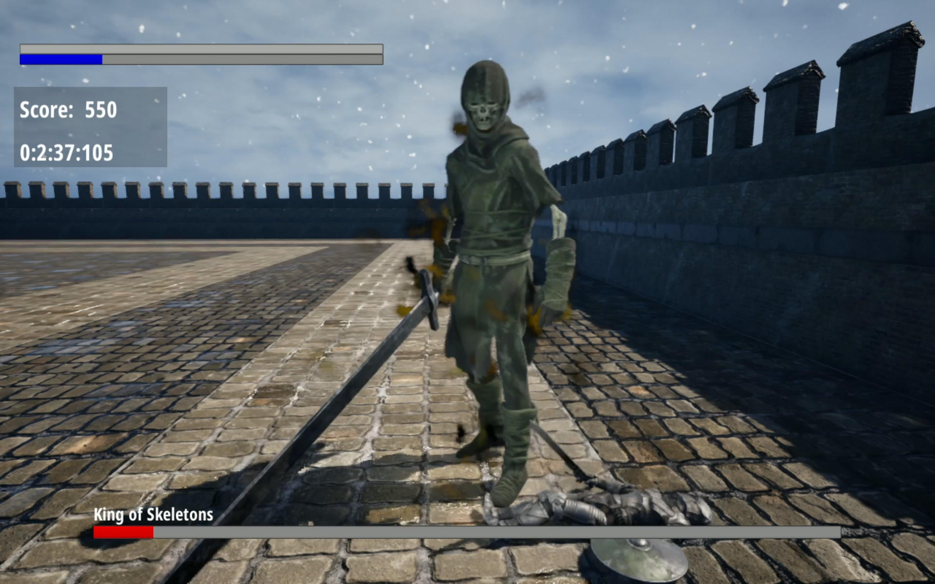 The King of Skeletons — a towering skeletal warrior wielding a long sword and overwhelming power.